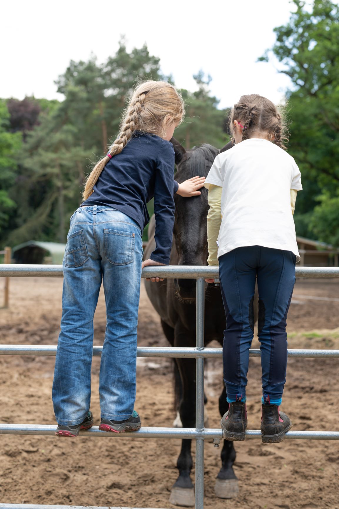 Das Projekt, welches uns sehr am Herzen liegt, nennen wir "Mit Pferdestärken Kinder stärken!". Damit meinen wir u. a. unsere sog. Sonntagskinder. Das sind Kinder, deren Behinderung so schwerwiegend ist, dass wir sie Sonntags einzeln betreuen. Selbstverständlich ergeben sich dafür keine Mehrkosten. Unser Projekt zielt darauf, die Kinder mental und körperlich zu stabilisieren – jedes Kind wird dabei individuell angeschaut und nach unseren Möglichkeiten gefördert. Im ersten Schritt finden wir heraus, welches Pferd/Pony zu dem Kind/Jugendlichen passt. Dieses Pferd wird dann zum ständigen Begleiter des Kindes. Es darf das Pony holen, pflegt und putzt es und reitet geführt. Dabei bauen wir viele Gymnastikeinheiten mit ein, um die Muskeln des Kindes zu stärken oder die Haltung zu verbessern. Aber auch Kuscheln und Liebhaben des Pferdes gehört mit dazu. Manche der Kinder möchten darüber hinaus noch auf dem Hof mithelfen. Das fördern wir und unterstützen die Kinder dabei. Wir möchten, dass die Familien mit ihren Kindern bei uns auch mental auftanken, um dann gestärkt wieder in ihren Alltag zu gehen.