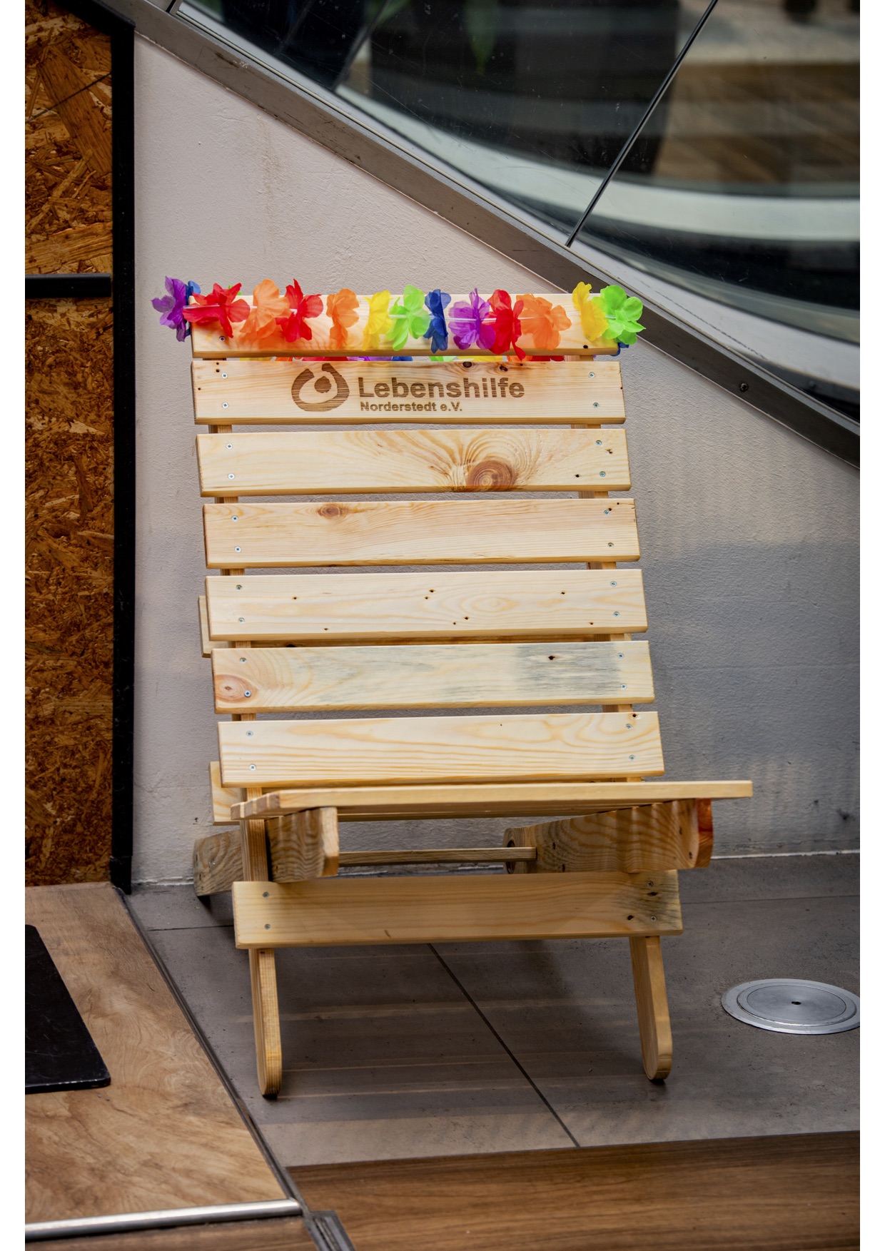 Ob als platzsparender Campingstuhl oder als flexibler Hingucker fürs Zuhause – jedes Stück ist ein Unikat! Alle zwei Wochen wird bei der Lebenshilfe Norderstedt gesägt, geschraubt und geschliffen, was das Holz hergibt. Und dabei entstehen nicht nur Stühle, sondern auch andere kreative Werke aus Holz.